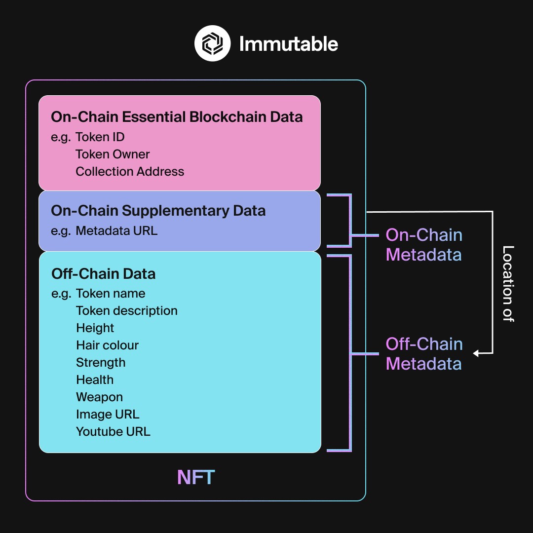 Immutable adopts metadata management strategies to provide the best web3 gaming experience, whilst reducing overhead costs. To do this, Immutable recommends that most NFT metadata is hosted off-chain, with the exception of the metadata repository location.
