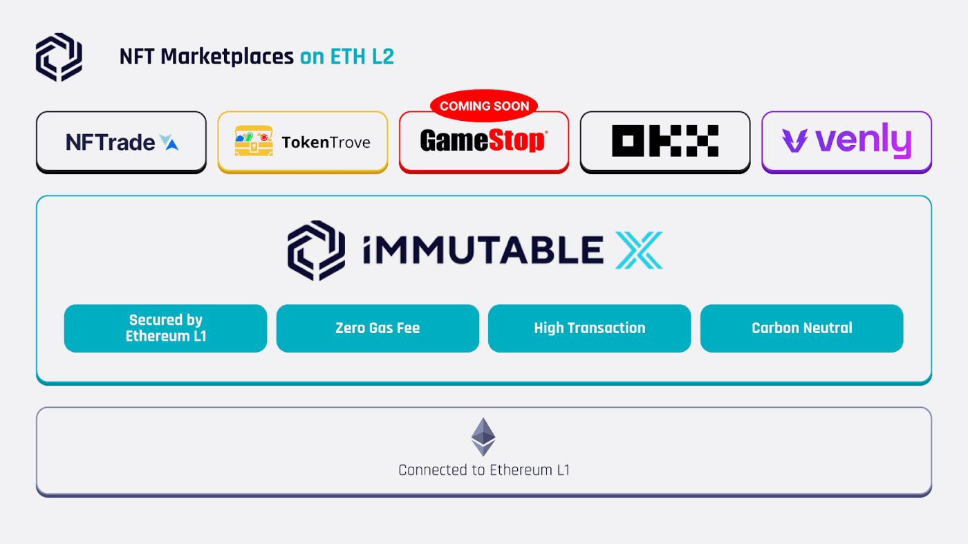 Earlier this year, GameStop announced it was building its first Non-Fungible Token (NFT) marketplace on Ethereum. As a strategic partner, Immutable X has been chosen to integrate its Ethereum Layer 2 protocol marketplace and work closely with GameStop’s teams to bring the next generation of gaming NFT projects to GameStop customers, creating significant opportunities for participation and liquidity for all players.