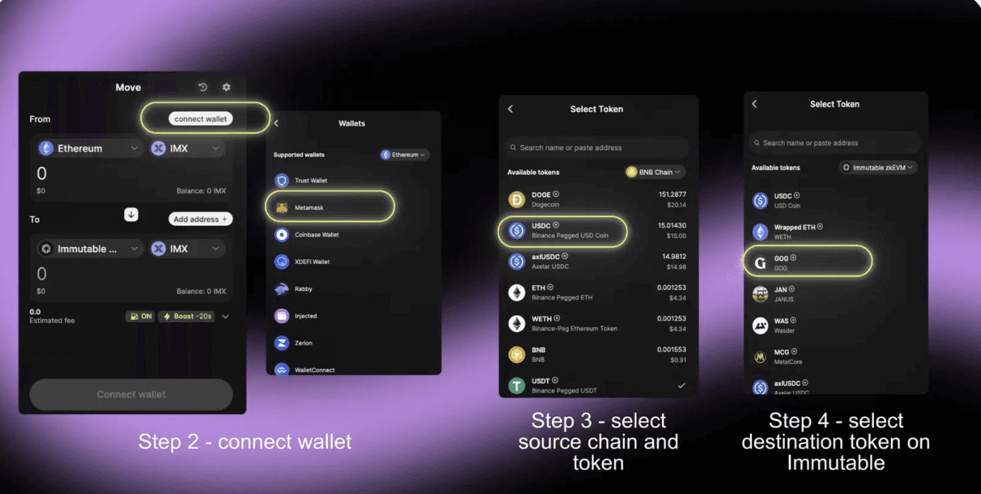 Immutable has integrated Squid into Immutable Toolkit so that users can bridge any tokens from any chain to any token on Immutable zkEVM. Here are the 5 steps for how: