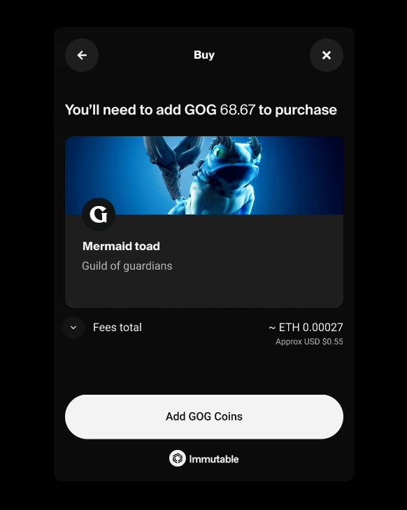 Crucially, Passport is different to the many custodial wallet implementations games have turned to over the past 12 months, because Immutable Passport is not bound to a particular game or marketplace, but can travel with users across the entire Immutable ecosystem. If a user has funds (through an on-ramp or by selling an asset), those funds will be available in all games and marketplaces, massively reducing purchase friction.